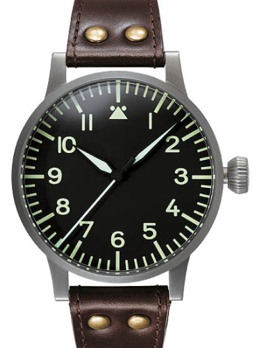 All stainless steel bead blasted screwed in display back case, 55mm diameter, reference 861334, onion crown. Watch is part of a limited edition of 500. Luminous black dial, gorgeous reproduction of the original over the jacket strap that can still be worn on the wrist, double hand made wooden box and papers, 2 year warranty. 24 jewel signed automatic wind movement, ETA A07.111, beautifully decorated in pearlage & cotes de Geneve finish, with fine regulation.Nice high-grade execution of the classic first pattern WWII B-Uhr, limited edition of 500, lovely watch overall.