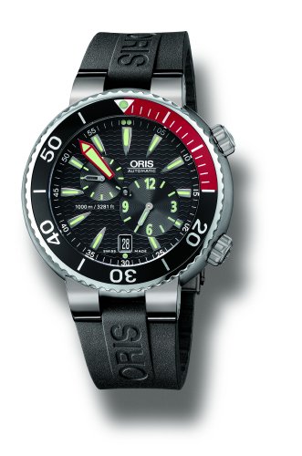 Titanium Case. Black Rubber Strap. Black Dial. Titanium Bezel. Scratch Resistant Sapphire Crystal. Buckle Clasp. 44 mm Case Diameter. Automatic Movement. Water Resistant At 300 Meters (1000 Feet). Oris TT1 Divers Der Meistertaucher Regulateur Mens Watch 649-7541-7164RS